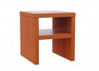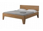 Drevená posteľ s masívnym čelom a veľkým úložným priestorom.